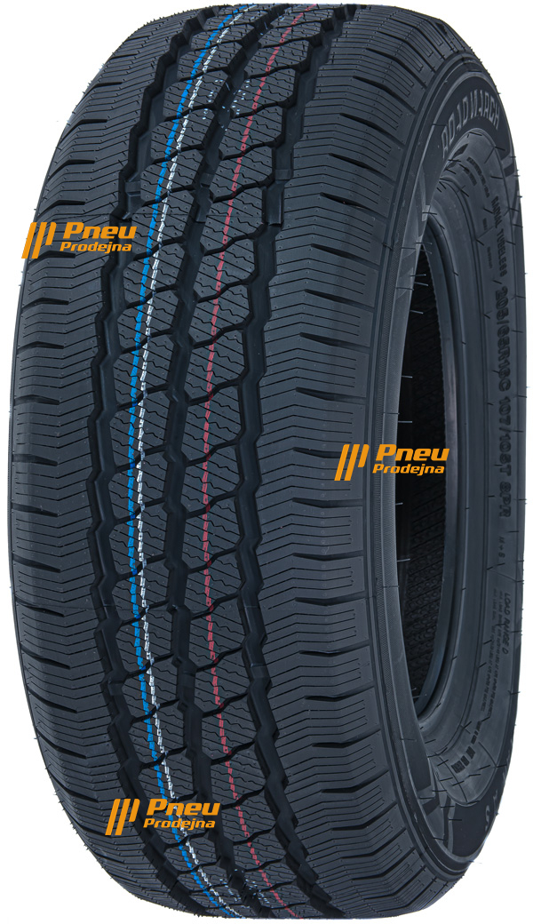 Celoroční pneumatiky ROADMARCH VAN A/S v rozměru 235/65 R16 C 115R. Pneumatika ROADMARCH VAN A/S je náhradou za zimní nebo letní pneumatiku, ne však plnohodnotnou. Hustší lamelování zlepšuje záběrové vlastnosti na ledu a sněhu, široké drážky odvádějí rozbředlý sníh a speciální směs s obsahem siliky zkracuje brzdnou dráhu na mokru. Celoroční pneumatiky nejsou určeny do hornatějších oblastí, protože jejich vlastnosti nedosahují kvalit zimní pneumatiky.